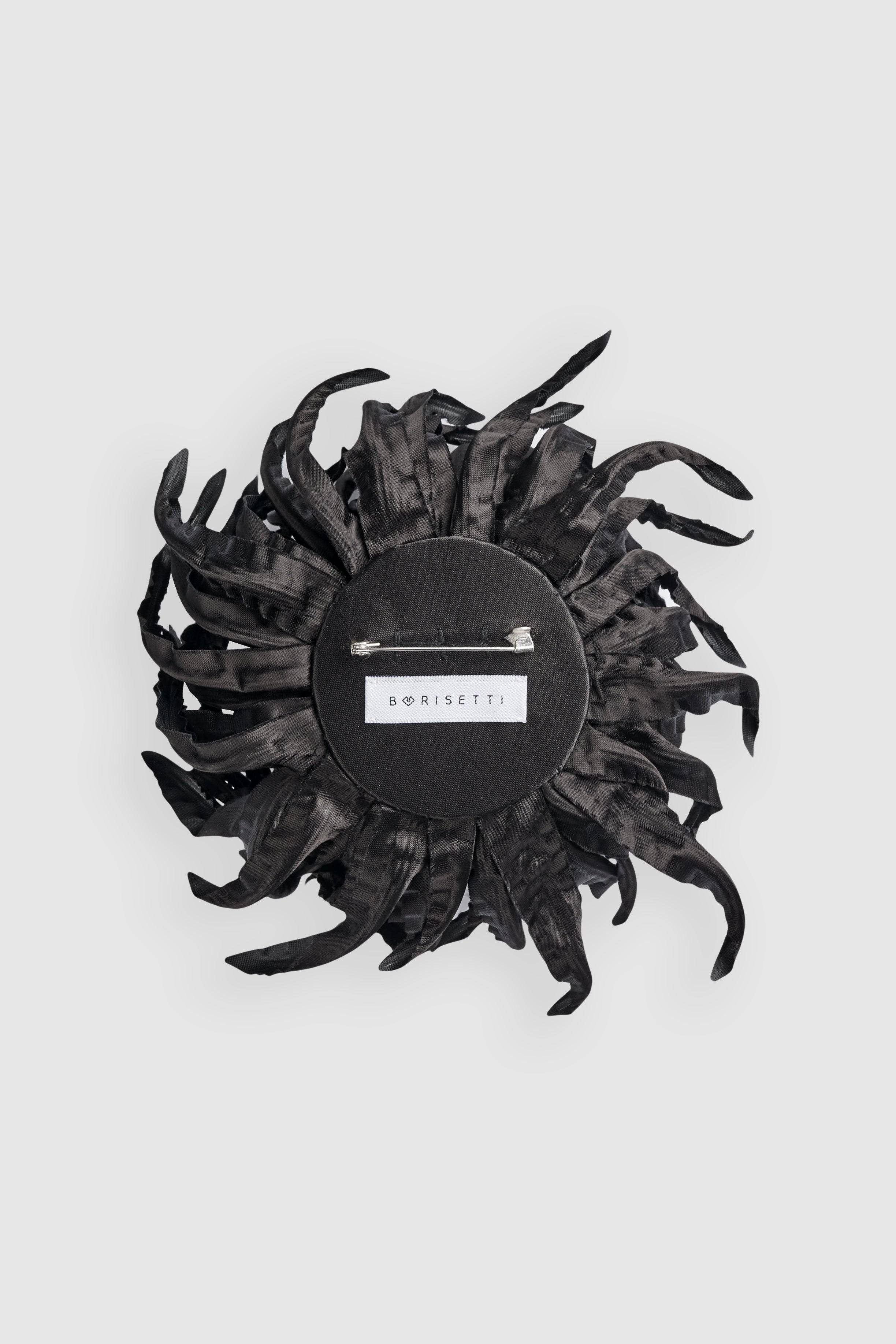 Elevate your style with the Black Silk Flower Brooch, a striking accessory expertly handcrafted from layers of delicate silk. Its voluminous floral design captures the essence of flowers in full bloom, making it a perfect statement piece for any occasion.